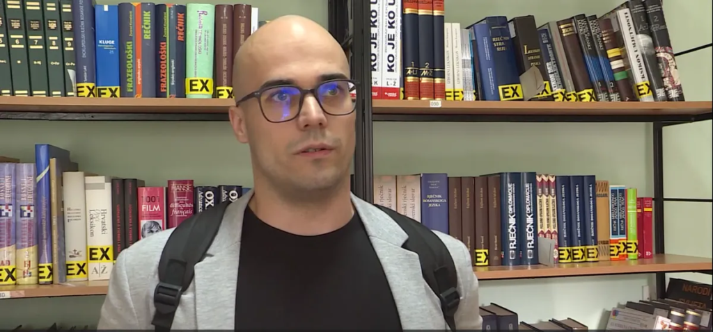 Pauzu između predavanja Adnan, student treće godine Pravnog fakulteta provodi u biblioteci, u kojoj čita knjige koje nisu nužno vezane za njegov stud