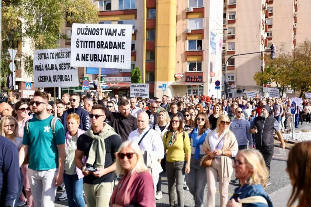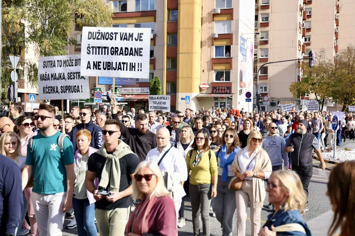 Kolona od nekoliko hiljada građana koji učestvuju na današnjem skupu u Tuzli, pješke je stigla do zgrade MUP-a TK.
