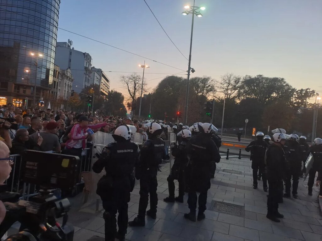 Ispred Skupštine Srbije, gde od jutros Dijana Hrka, majka Stefana Hrke koji je jedan od 16 poginulih u padu nadstrešnice na Železničkoj stanici u Novo