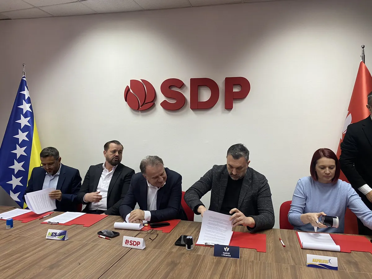 Predstavnici stranaka SDP, NiP, PDA, NES i Naprijed potpisali su danas koaliconi sporazum u Banjaluci. Kako je rečeno, ovaj sporazum tiče se liste za