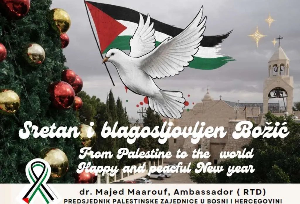 Palestinska zajednica u BiH: Božić je vrijeme kada se slavi dolazak svjetla i ljubavi / Balkans Latest / By OZNA.US Palestinska zajednica u Bosni i Hercegovini uputila je čestitke svim vjernicima povodom nadolazećeg Božića i Nove godine.