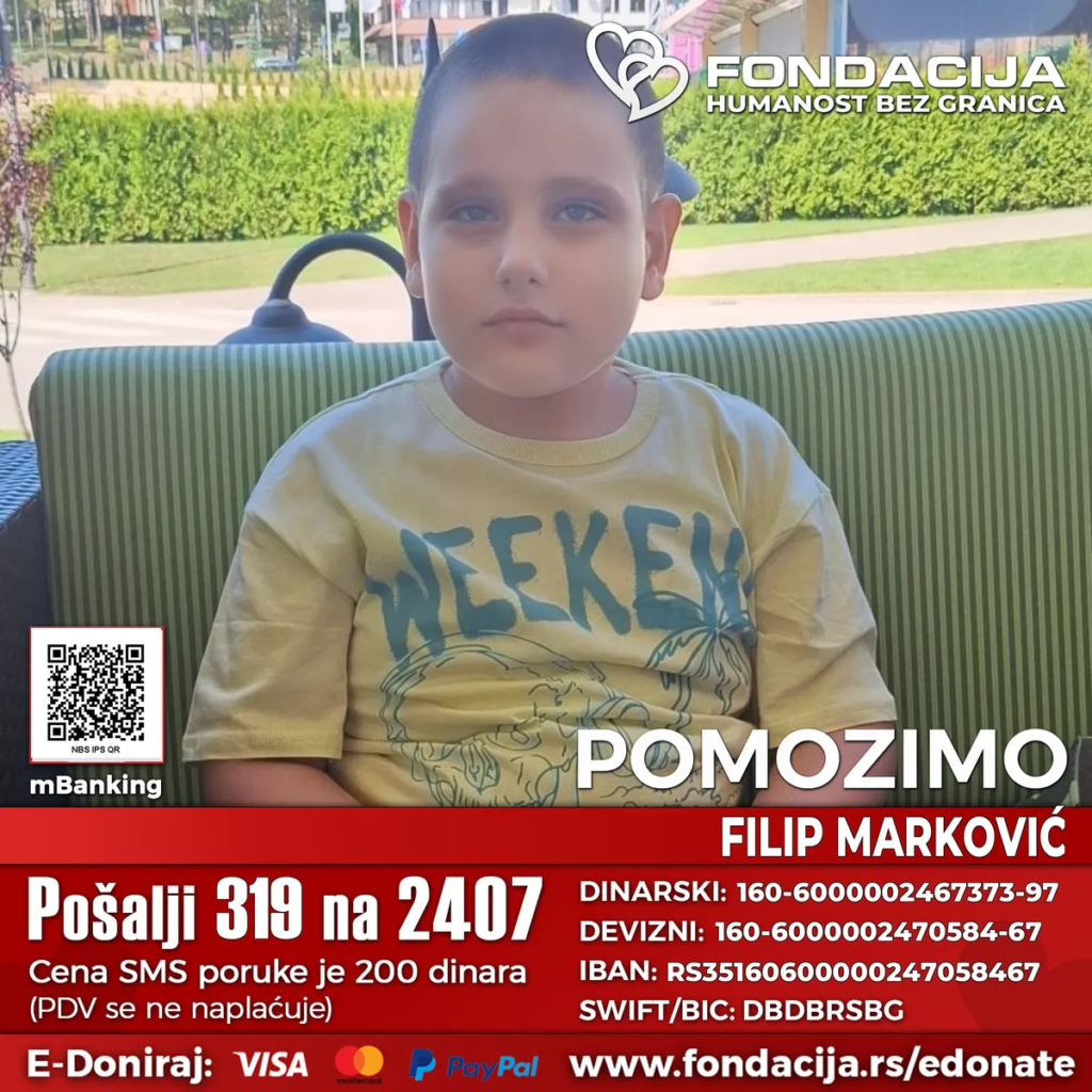 Filip Marković (8) iz sela Banja kod Aranđelovca je dečak koji se od najranijeg detinjstva hrabro suočava sa ozbiljnim zdravstvenim izazovima. Dijagno