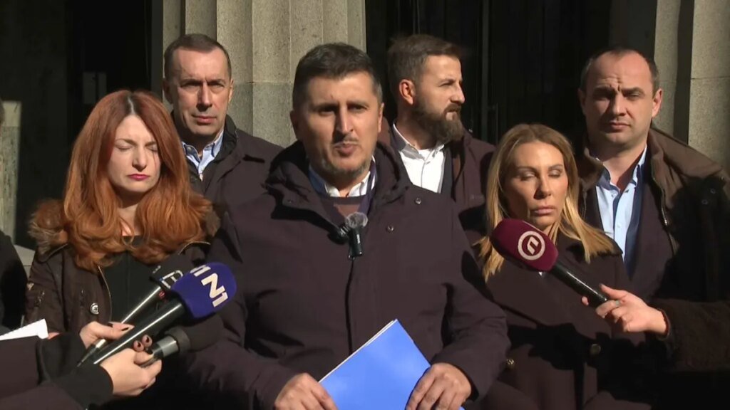 Narodni poslanik Miloš Pavlović obratio se ispred Ustavnog suda u ime poslaničkih grupa NPS, NLS, ZLF i PSG i obavestio javnost da su te poslaničke gr