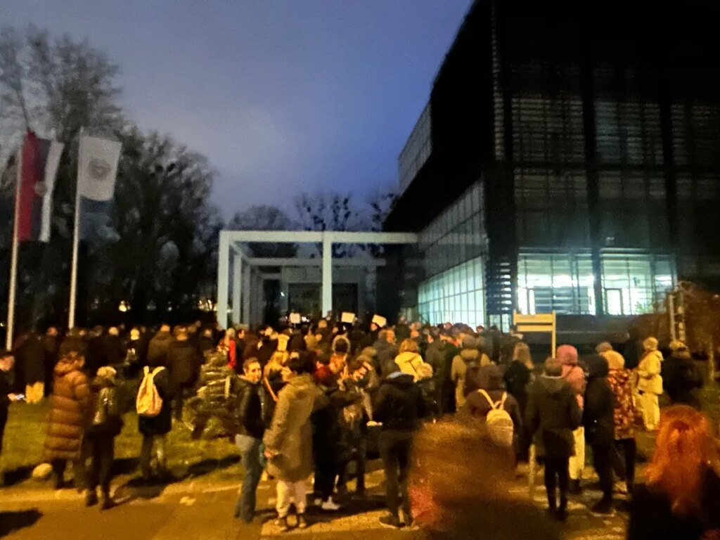 Ispred zgrade Rektorata Univerziteta u Novom Sadu večeras je skup podrške Univerzitetu u Beogradu jer je policija jutros ušla u beogradski Rektorat u