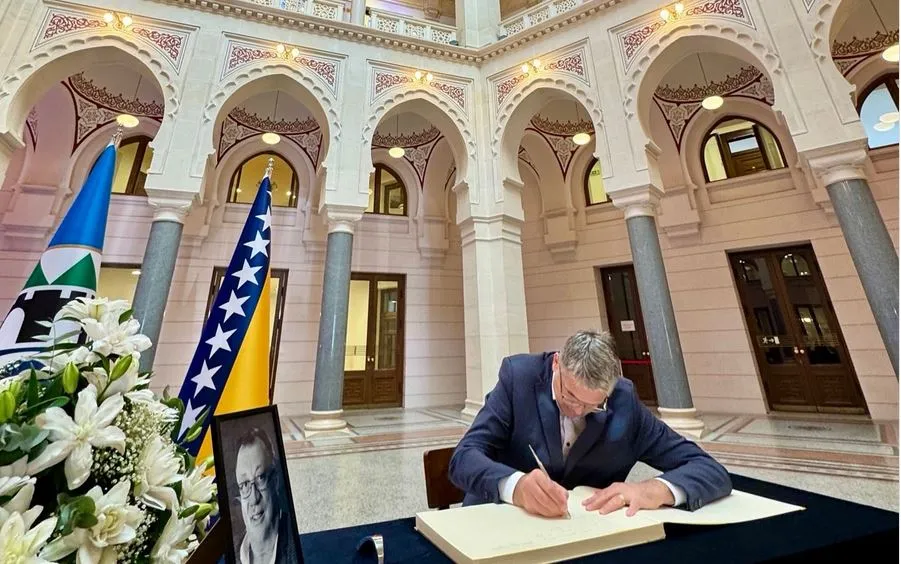 U sarajevskoj Vijećnici otvorena knjiga žalosti povodom smrti Halida Bešlića / Balkans Latest / By OZNA.US U sarajevskoj Vijećnici otvorena je danas knjiga žalosti povodom smrti muzičkog velikana, Halida Bešlića.