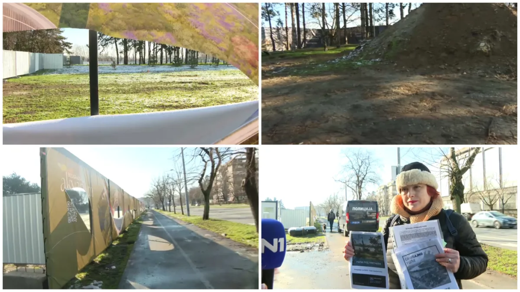 Pored gradilišta na mestu nekadašnjeg hotela Jugoslavija kasno sinoć – pod nadzorom policije – ograđen je deo parka Ušće, na mestu gde je planirana iz