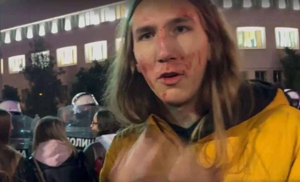 Student Vukašin Đinović povređen je sinoć u Novom Sadu, kada ga je jedan pripadnik Žandarmerije iz čista mira, kako kaže, udario štitom u glavu.